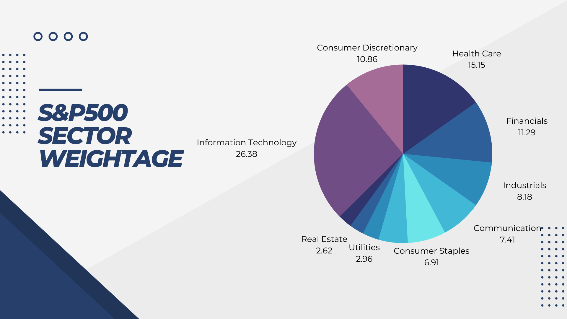 The Market Capitalisation Weighted Index is a more widely used method of constructing indexes, as companies with higher market value (share price x total number of shares outstanding) have a higher weightage over companies with a lower market cap. Standard and Poor’s 500 (S&P500 / US SP 500) is regarded as the best gauge of large-cap US equities [5], and is one of the most well-known indexes in the world. There are also market cap weighted indexes in Asia, ranging from China’s A50 Index and Hong Kong’s Hang Seng Index, to the Hang Seng Tech Index and Singapore’s Straits Times Index. The table below shows the top 5 with the highest weightage in the S&P500 market cap weighted index and sector weightage (As of 28 October 2022)