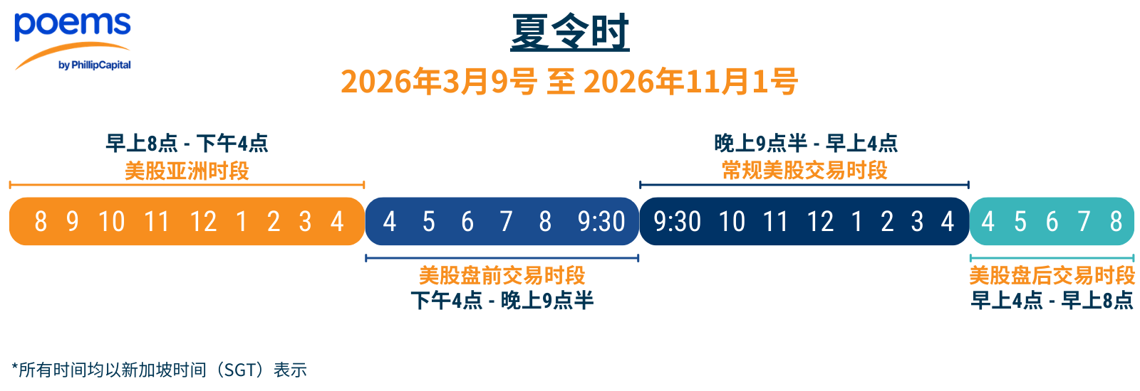 | 新加坡时间 (SGT) | 上午8点至下午4点(美国夏令时) |